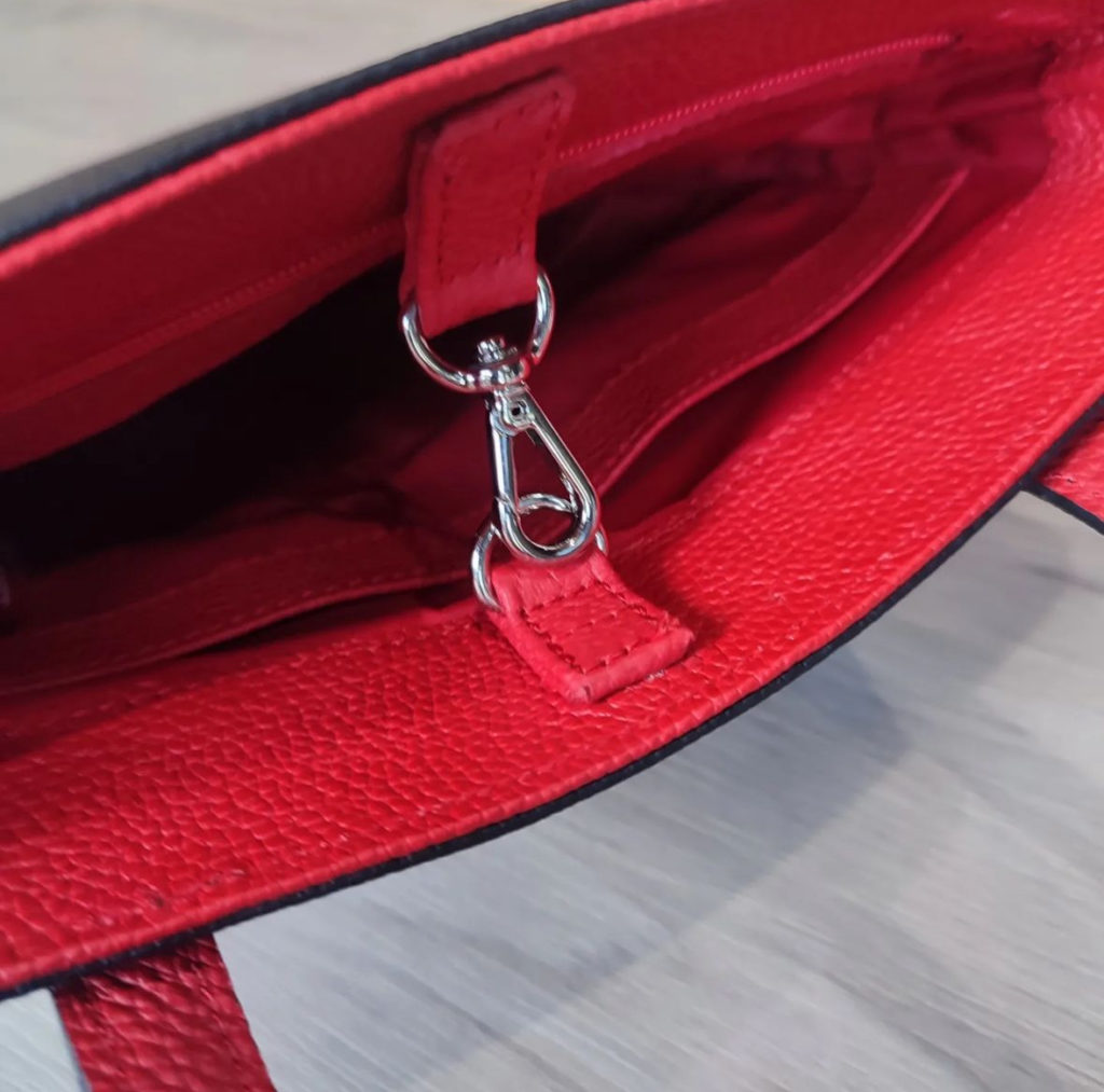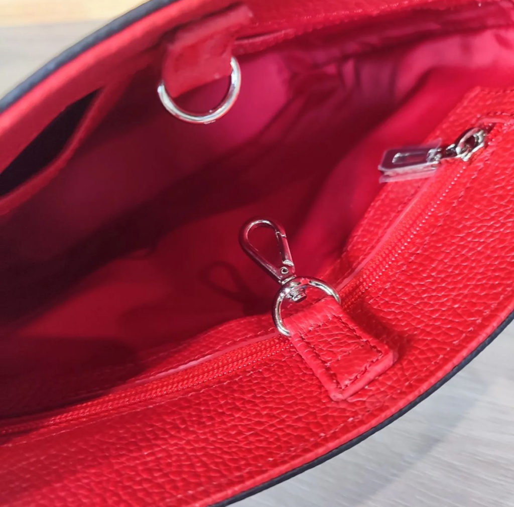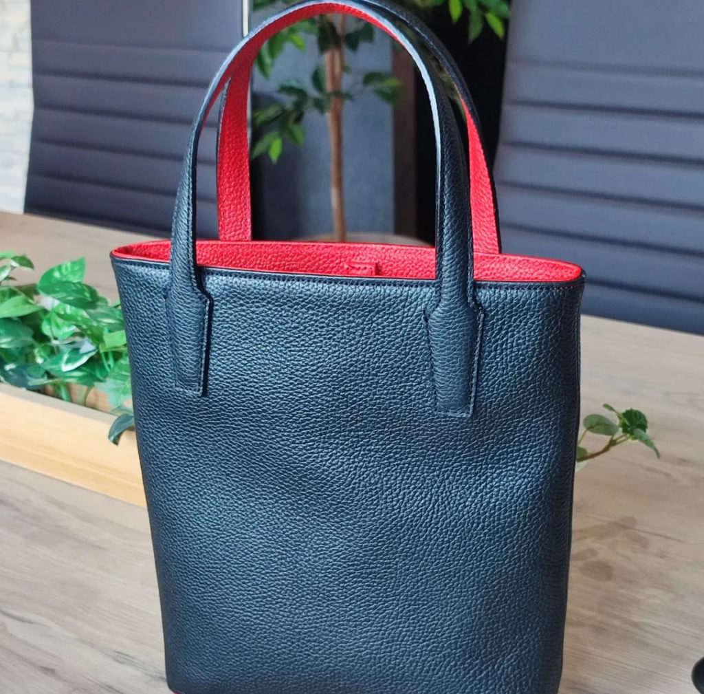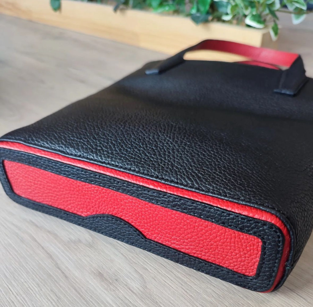 Leather bag in black and red combination