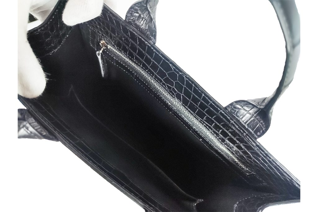 クロコダイル革のお腹部分を贅沢に2匹分使用しており、クロコダイル革の美しさを最大限表現したバッグとなっています。